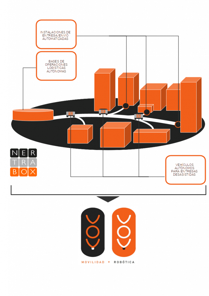 VOY movilidad+robótica ha emergido de la integración del desarrollo de un sistema autónomo de Nivel 6 – único en haberlo alcanzado – para vehículos autónomos: SAIDROT® , instalado en una plataforma logística urbana, diseñada específicamente para operar en distancias micro y resolver la “última milla”, operando desde Bases de Operaciones Logísticas Autónomas, empotradas en las ciudades y concebidas para operar 24/7, combinados con la robotización de Instalaciones de Entrega/Envío Automatizadas (IDEAs) desplegadas en cada zona-distrito, que permiten recibir directamente suministros, sin necesidad de presencia ni intervención humana.
